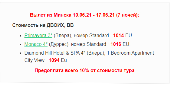 - 5% оплачивается в течение 5 дней с момента подтверждения тура
