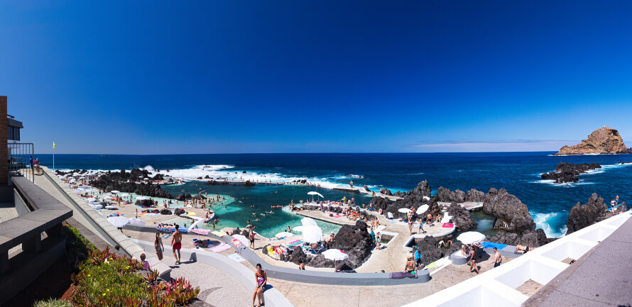 Особая фишка Мадейры – лавовые бассейны. Когда-то вышедшие на поверхность потоки лавы были охлаждены океаном и превратились в естественные бассейны. Чтобы сделать их доступными для купания, дно выровняли, а вокруг построили бетонные настилы. Лавовые бассейны соединены с океаном, поэтому вода в них остается чистой и прозрачной за счет постоянного обновления. И, в отличие от вод океанических, вода в бассейнах всегда спокойная и располагает к купанию.